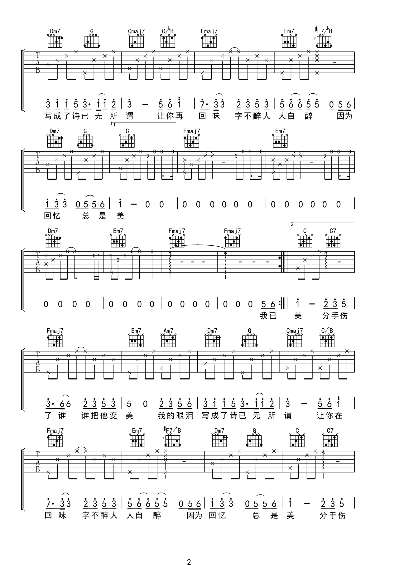 本文主要讲述《眼泪成诗》吉他简谱C调弹唱谱曲谱内容以及网友的评价,喜欢的朋友点一下关注!