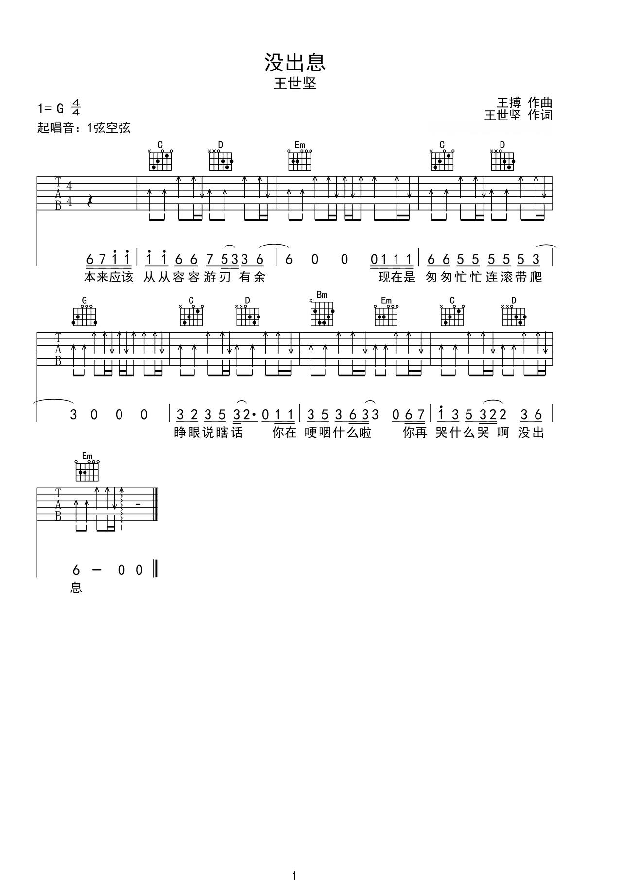 本文主要讲述《没出息》吉他简谱G调弹唱谱曲谱内容以及网友的评价,喜欢的朋友点一下关注!