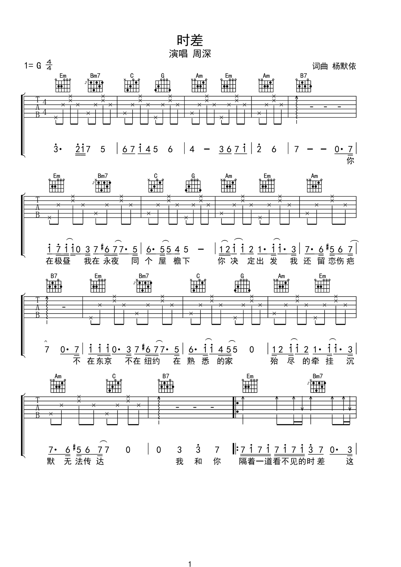 本文主要讲述《时差》吉他简谱G调弹唱谱曲谱内容以及网友的评价,喜欢的朋友点一下关注!
