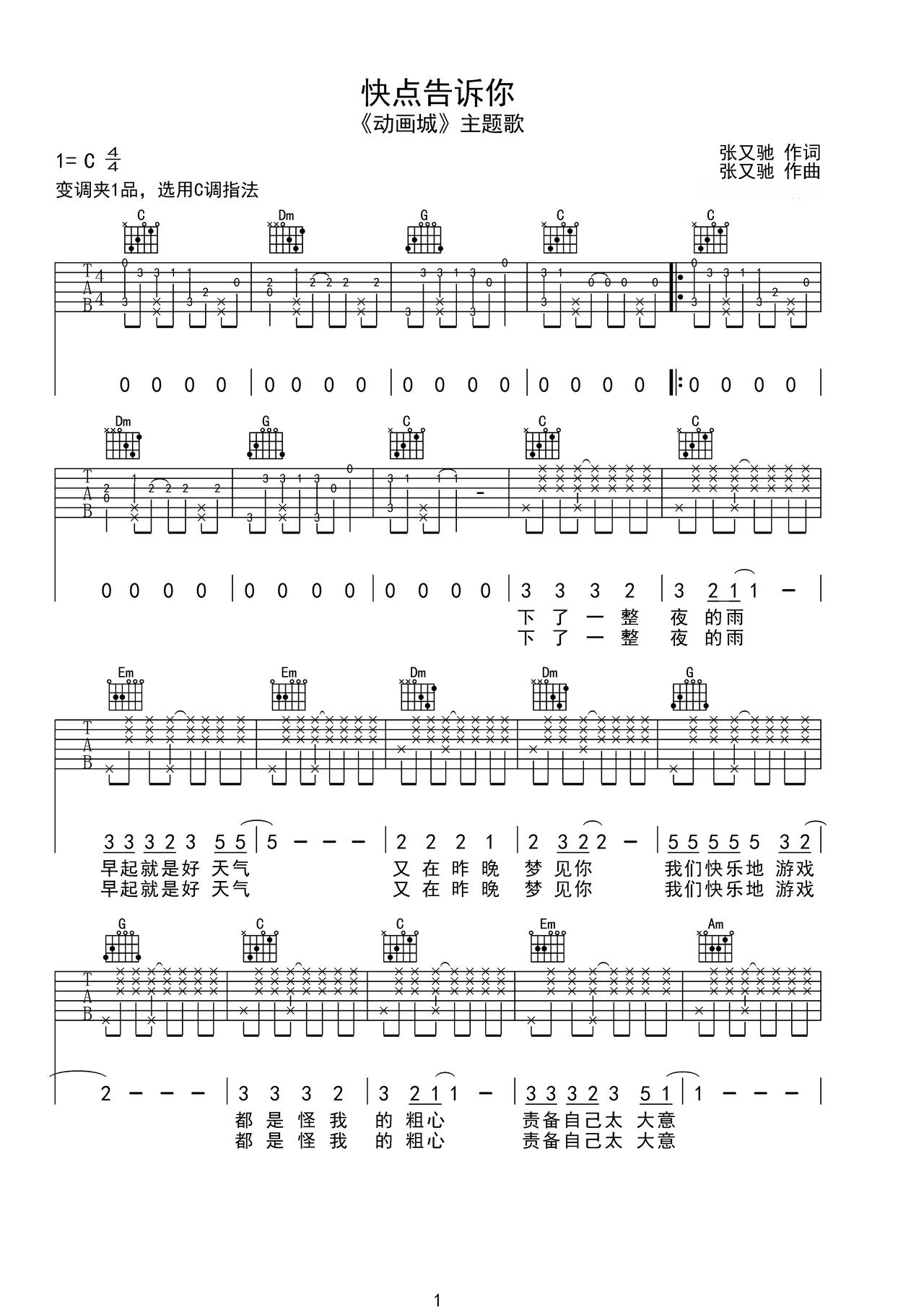 本文主要讲述《快点告诉你》吉他简谱C调弹唱谱曲谱内容以及网友的评价,喜欢的朋友点一下关注!