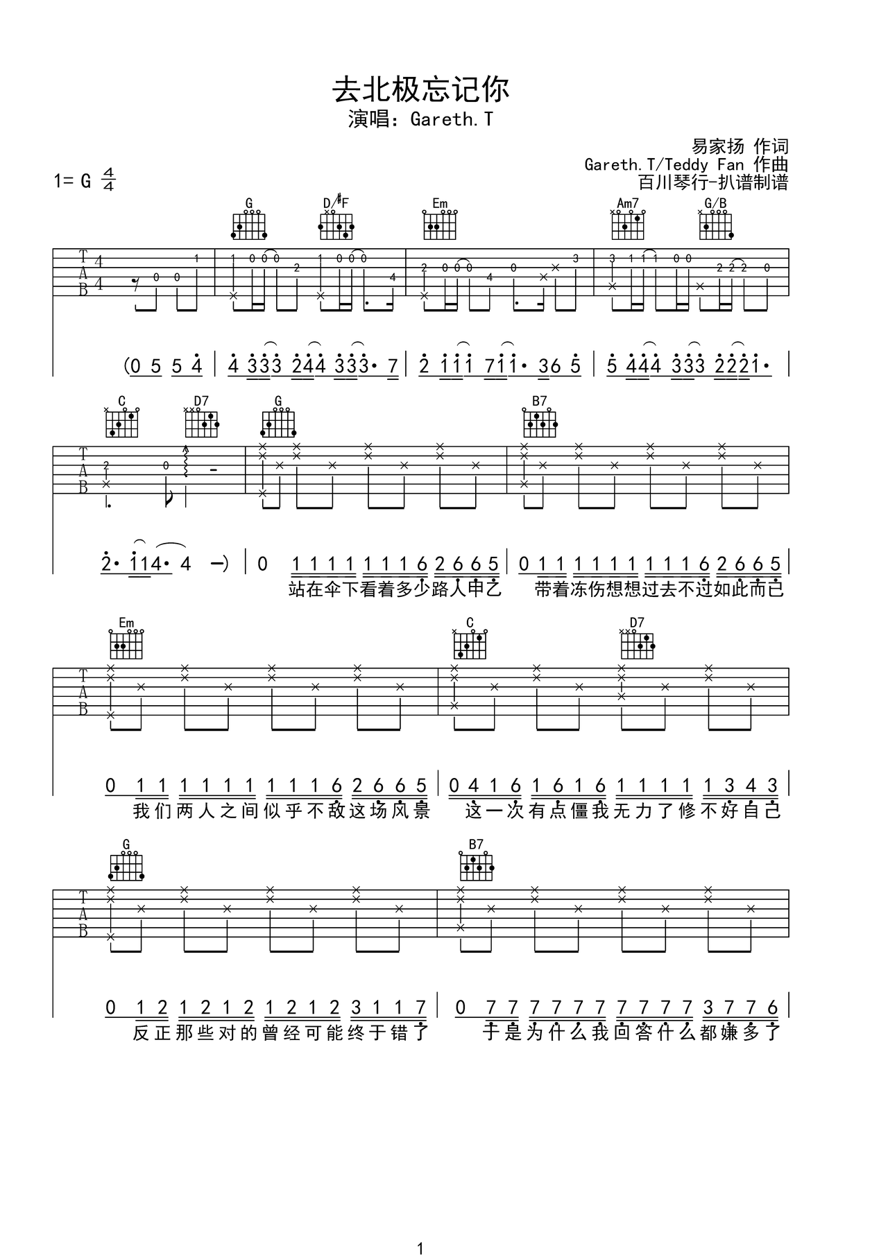本文主要讲述《去北极忘记你》吉他简谱G调弹唱谱曲谱内容以及网友的评价,喜欢的朋友点一下关注!