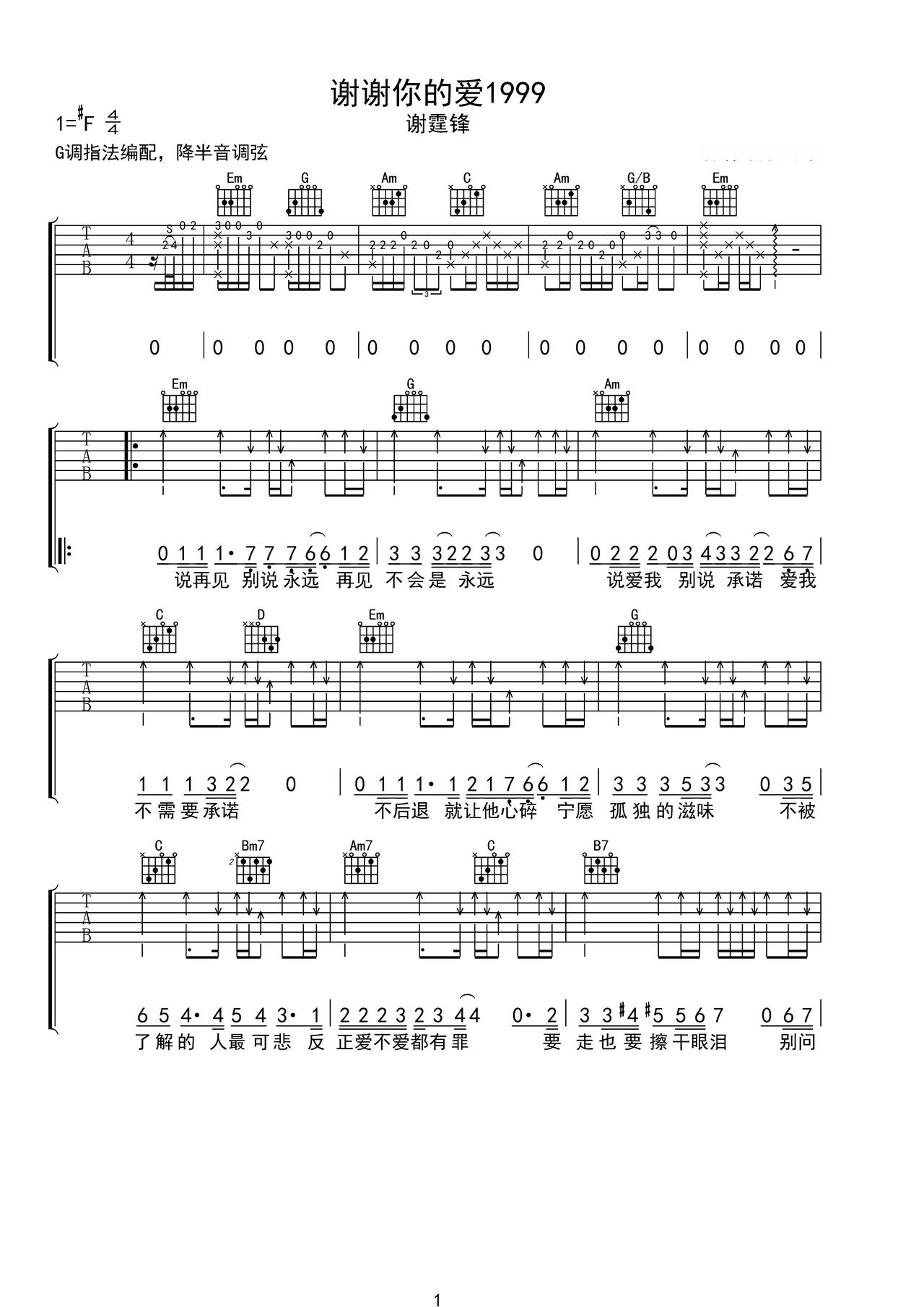 本文主要讲述《谢谢你的爱1999》吉他简谱C调弹唱谱曲谱内容以及网友的评价,喜欢的朋友点一下关注!