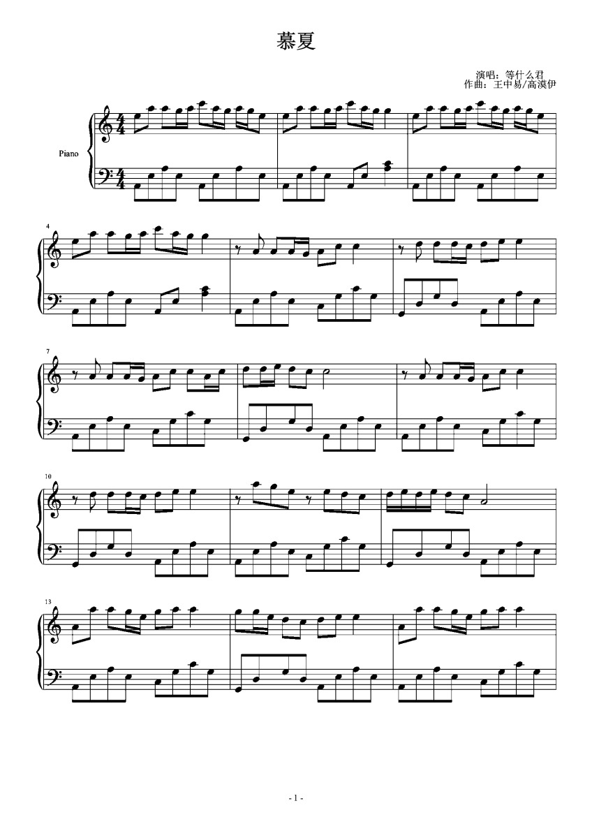 慕夏_钢琴谱: