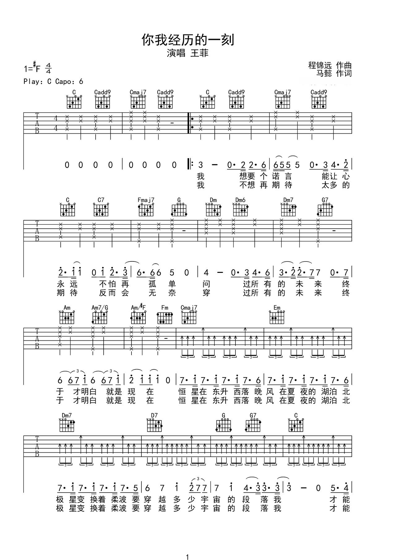 你我经历的一刻_吉他谱: