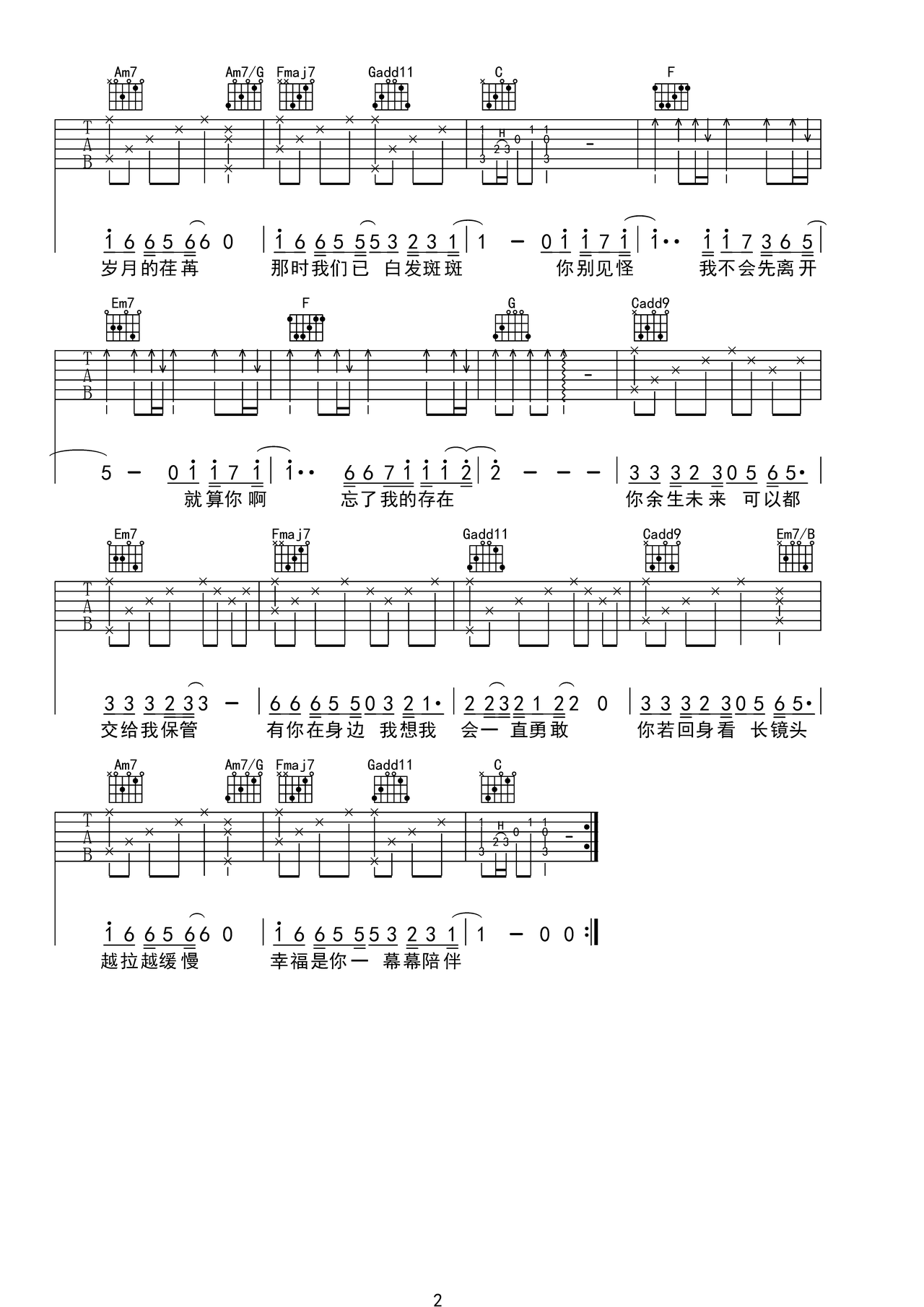 人生路漫漫_吉他谱: