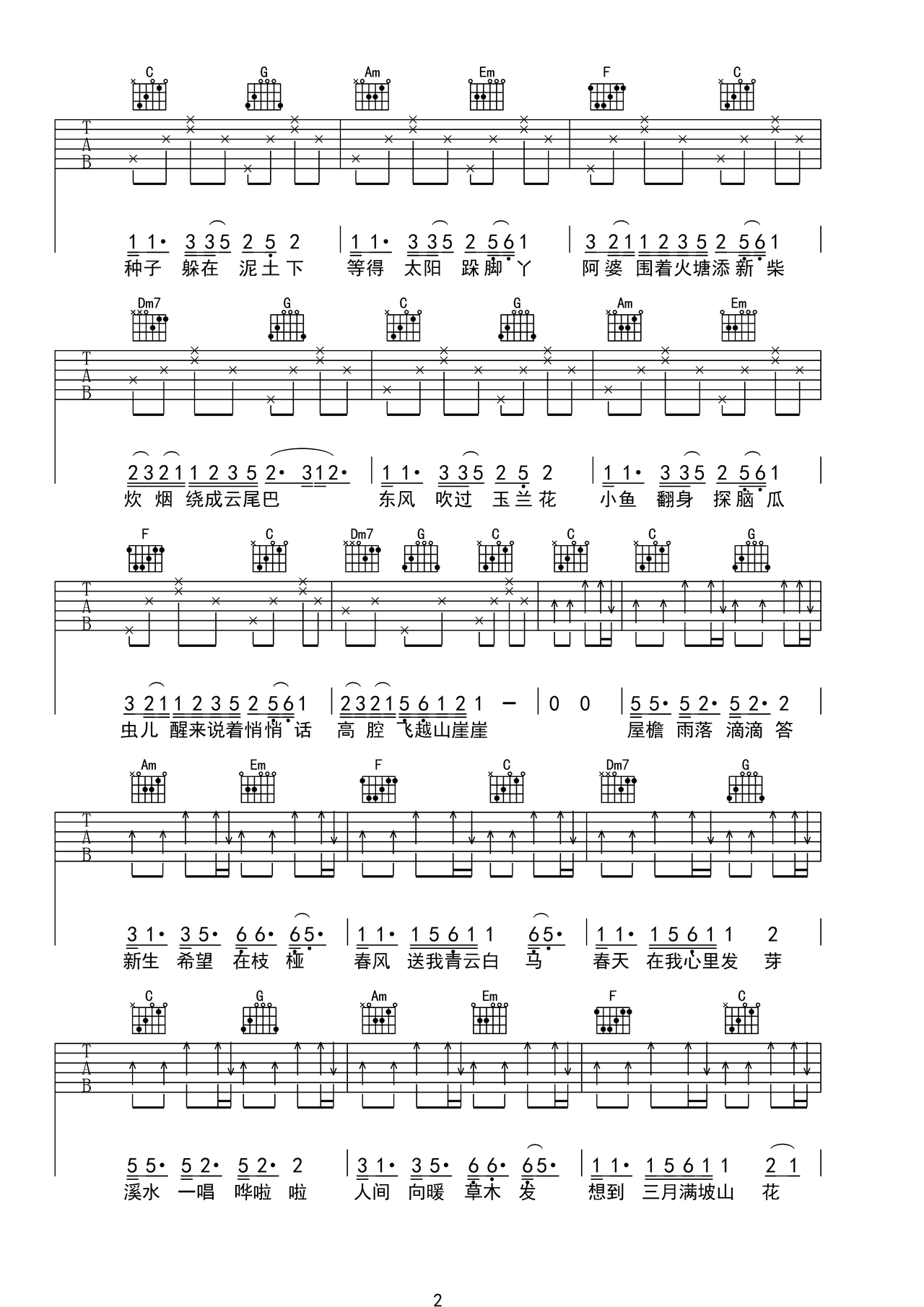 本文主要讲述《立春》吉他简谱C调弹唱谱曲谱内容以及网友的评价,喜欢的朋友点一下关注!