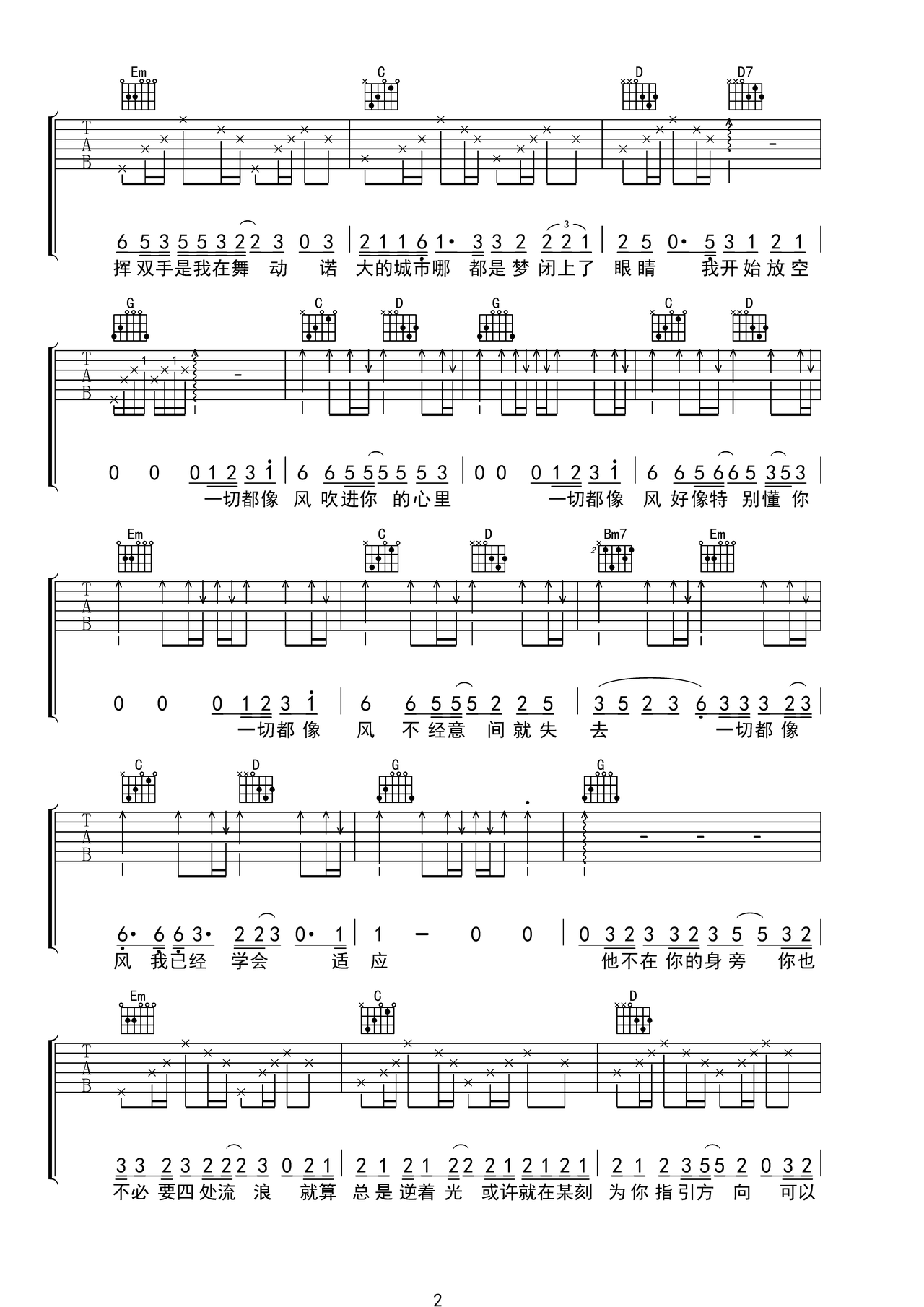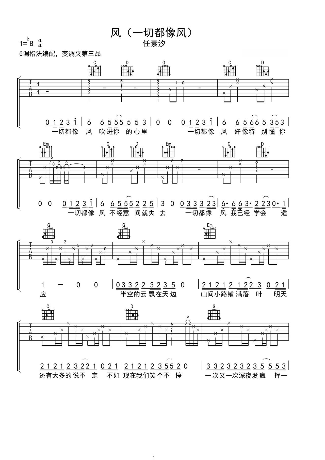风_吉他谱: