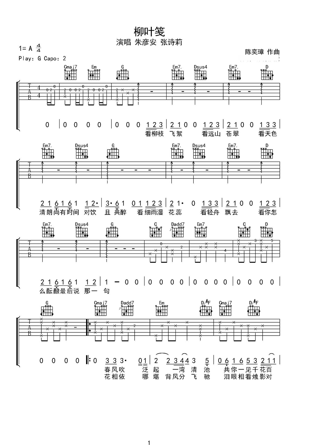 本文主要讲述《柳叶笺》吉他简谱G调弹唱谱曲谱内容以及网友的评价,喜欢的朋友点一下关注!