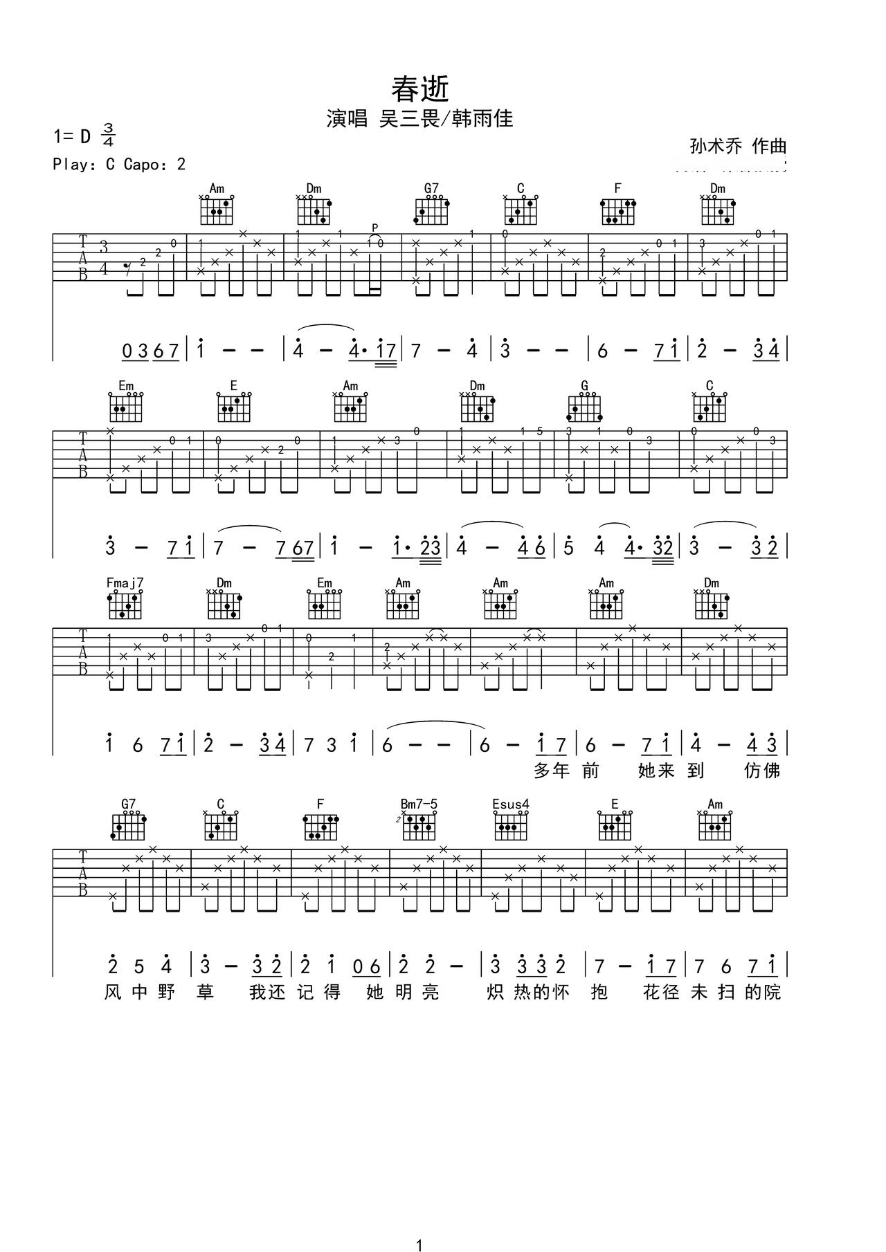 春逝_吉他谱: